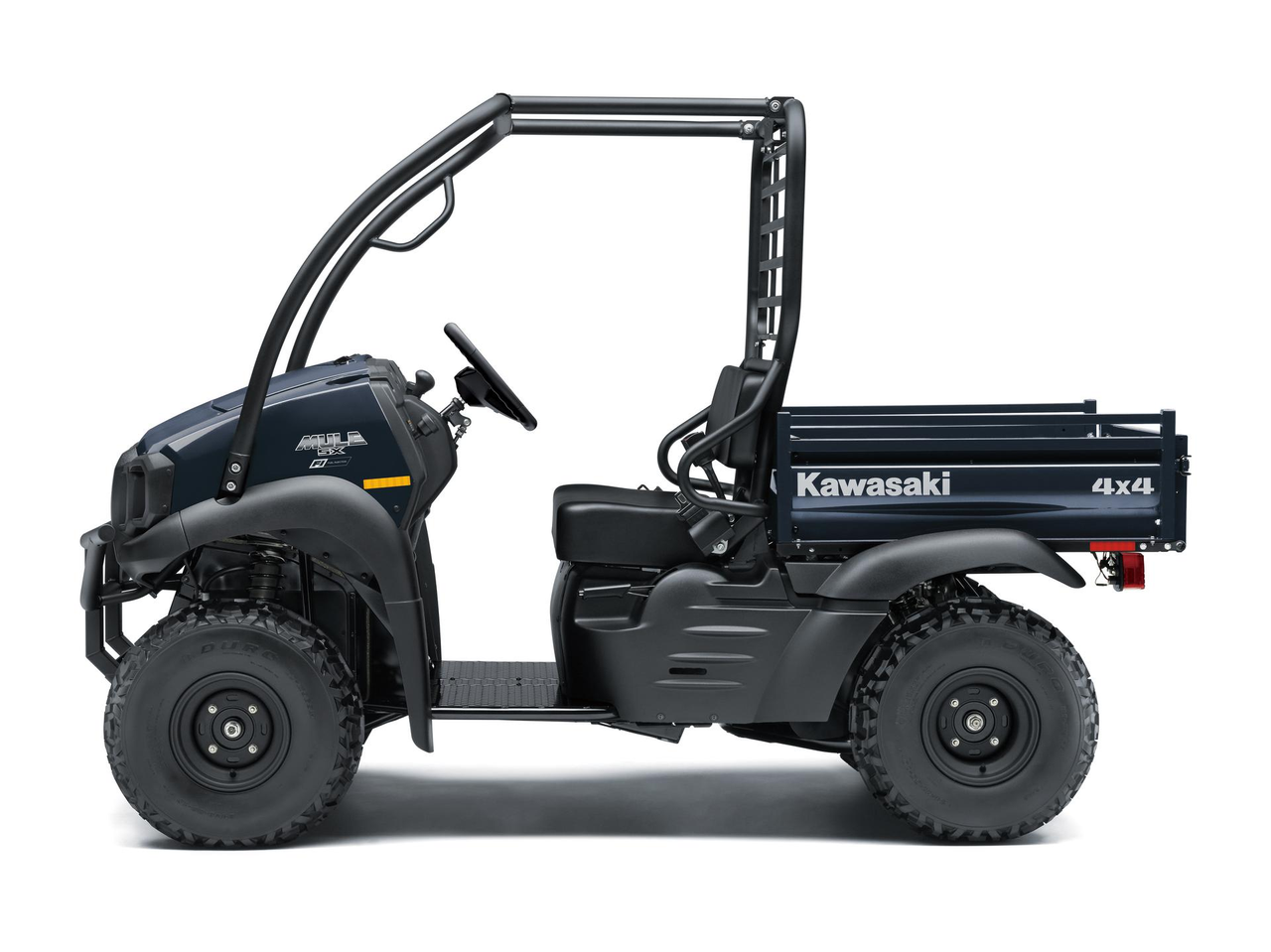 DasMULE SX 4x4 fährt auf 24-Zoll-Reifen und bietet wählbaren 2WD und 4WD mit Hi-Lo-Doppelverteilergetriebe und hinterer Differenzialsperre. Das Kawasaki PRO-Styling, das neigungsverstellbare Lenkrad und der zuverlässige 401-ccm-OHV-Motor, 181 kg Zuladung und 500 kg Anhängelast machen sie zu einem echten Allround-Fahrzeug.