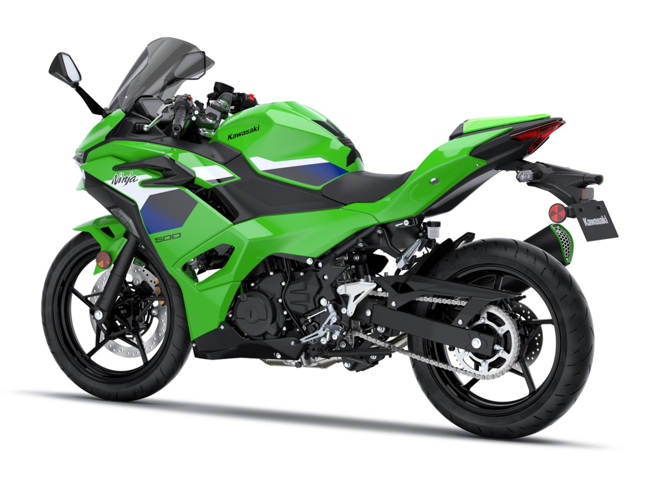 Der Gitterrohrrahmen der Ninja 500 ähnelt dem Design der Ninja H2. Die fortschrittliche, dynamische Steifigkeitsanalyse von Kawasaki wurde verwendet, um optimale Steifigkeit bei geringem Gewicht sicherzustellen. Der Motor ist starr montiert und dient als tragendes Bauteil. Das Rahmendesign trägt wesentlich zur geringen Leermasse des Motorrades bei.