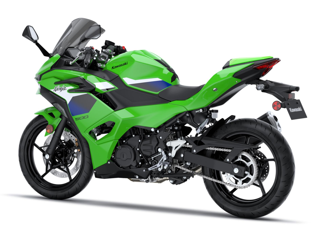 Die Ninja 500 SE brilliert durch ihr fließendes Design von Front bis Heck. Sportliche Elemente der Maschine zeigen einen zielgerichteten, vom Rennsport inspirierten, Look.