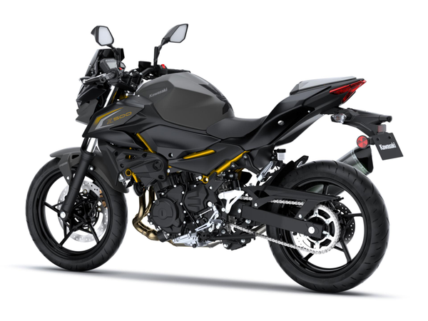 Die neue Z500 verfolgt mit ihrem aggressiven, agilen Design das Konzept der Z-Reihe. Die Sugomi-Designelemente (geduckte Haltung, tief positionierter Kopf und hochgezogenes Heck) bilden eine Silhouette, die sofort als Kawasaki Supernaked erkennbar ist.