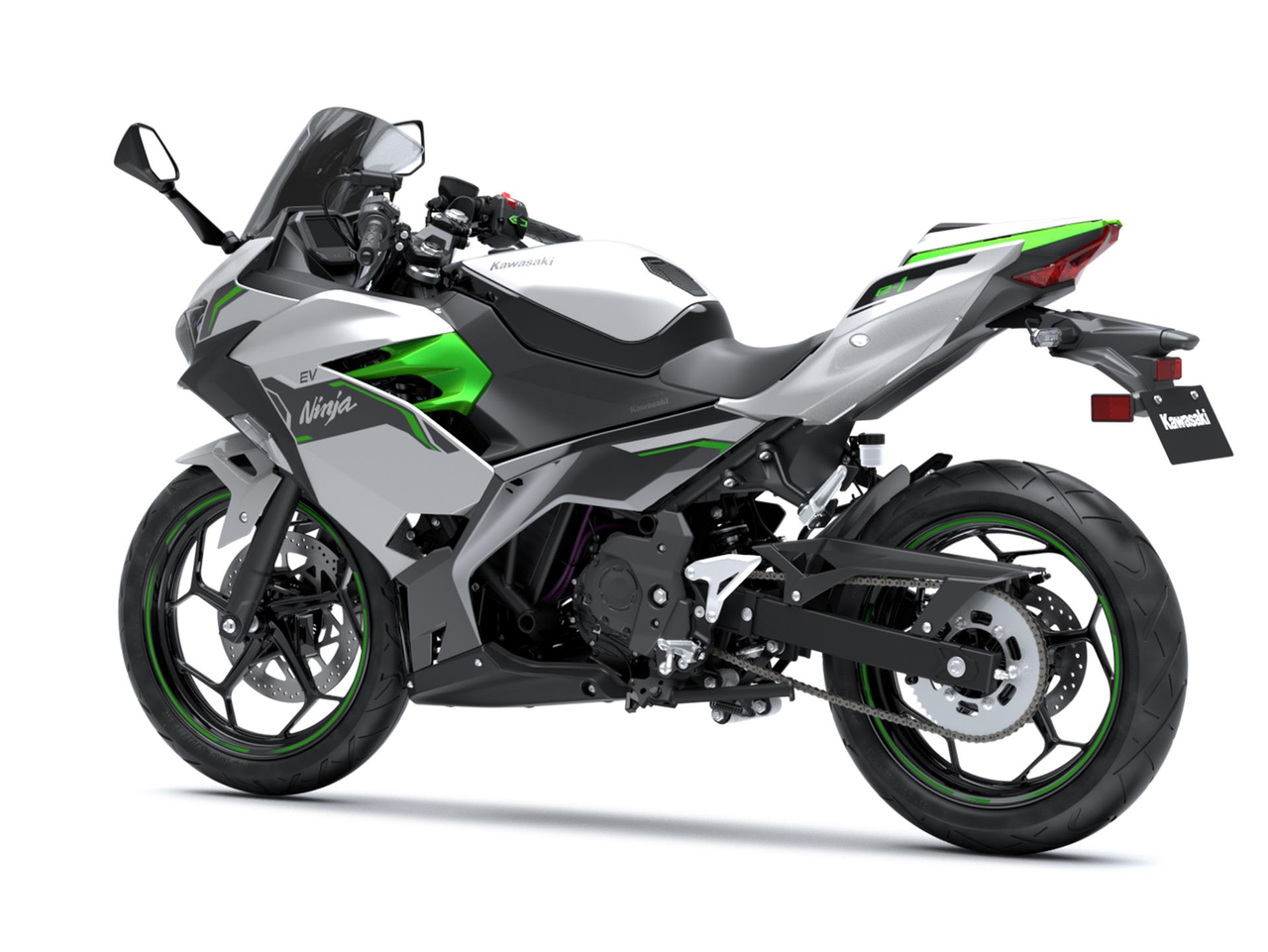 Als Ergänzung zum attraktiven Ninja- und Z-Motorraddesign verleihen die Farben Silber und mattes Lime-Green den EV-Modellen von Kawasaki ein frisches, futuristisches Image.