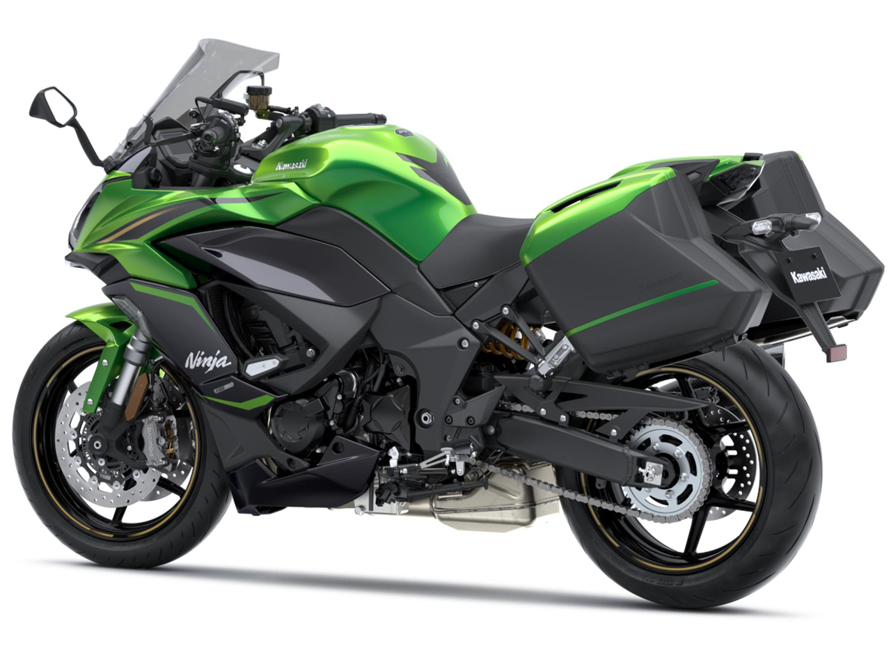 Die Ninja 1100SX hebt mit dem neuen Motor mit mehr Hubraum und dem verbesserten KQS sportlichen Fahrspaß auf die nächste Stufe. Das intuitive Handling, die Supersport-inspirierten Fahrwerkskomponenten und das dynamische Ninja-Styling des Vorgängermodells wurden beibehalten, wodurch das hervorragend ausbalancierte Motor-Fahrwerk-Paket für ultimativen Fahrspaß auf der Straße sorgt.