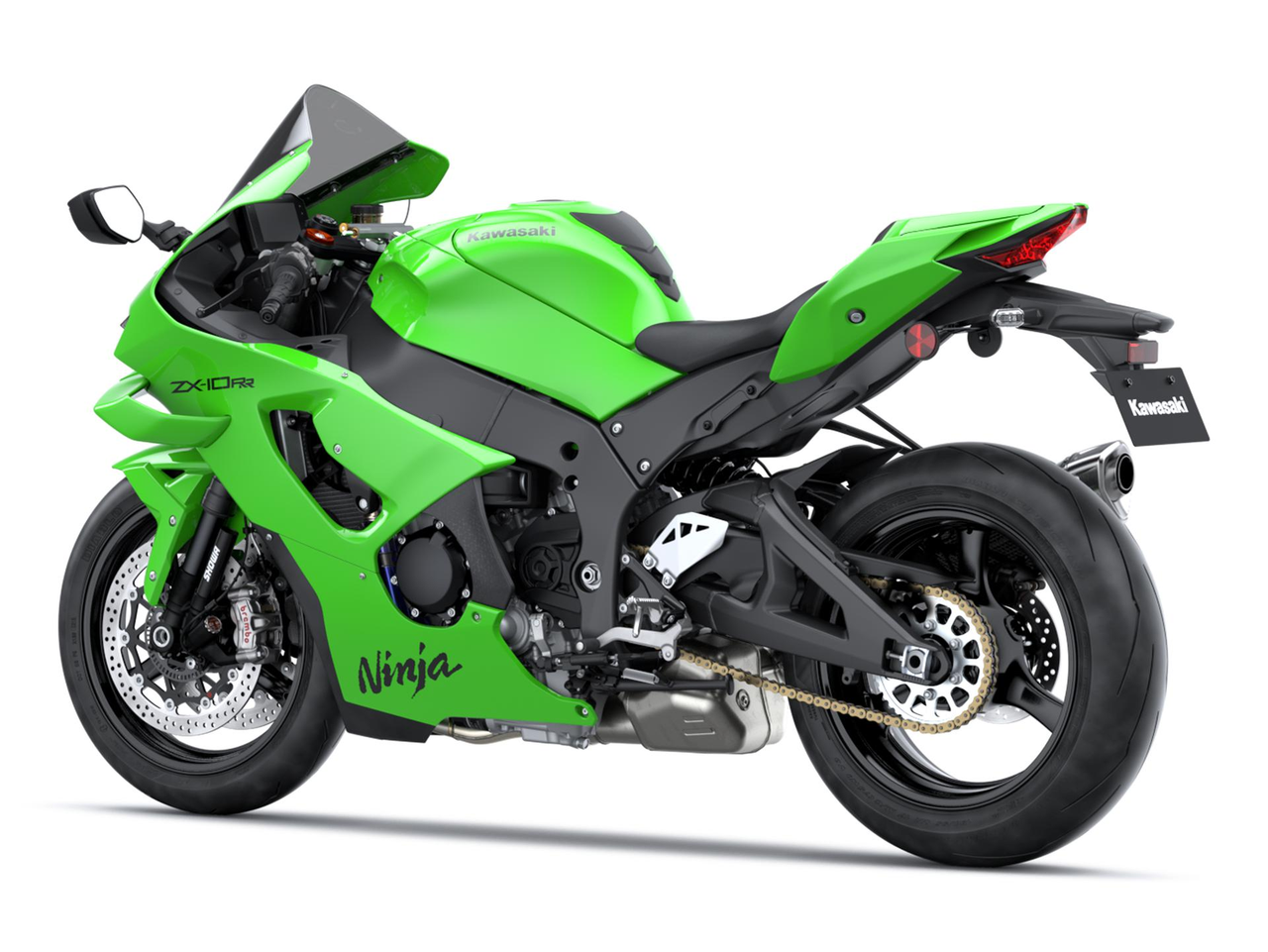 Das Chassis der Ninja ZX-10R überzeugt mit präzisem Handling, hoher Kurvenstabilität und außergewöhnlicher Kontrolle. Die Fahrwerksgeometrie wurde gezielt an die aerodynamischen Verbesserungen angepasst, um die Traktion am Hinterrad zu steigern und die Balance zwischen Stabilität und Agilität weiter zu optimieren. Diese Abstimmung erleichtert die Gewichtsverlagerung zwischen Front und Heck und ermöglicht es erfahrenen Fahrern, das Motorrad auf der Rennstrecke auch über das Hinterrad präzise zu steuern.