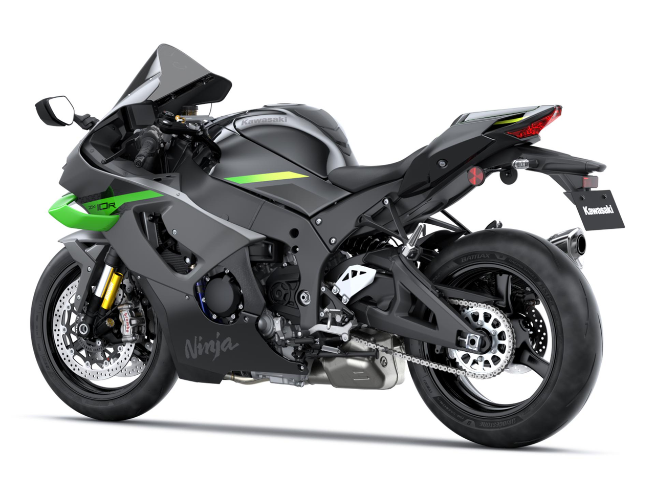 Das Chassis der Ninja ZX-10R überzeugt mit präzisem Handling, hoher Kurvenstabilität und außergewöhnlicher Kontrolle. Die Fahrwerksgeometrie wurde gezielt an die aerodynamischen Verbesserungen angepasst, um die Traktion am Hinterrad zu steigern und die Balance zwischen Stabilität und Agilität weiter zu optimieren. Diese Abstimmung erleichtert die Gewichtsverlagerung zwischen Front und Heck und ermöglicht es erfahrenen Fahrern, das Motorrad auf der Rennstrecke auch über das Hinterrad präzise zu steuern.