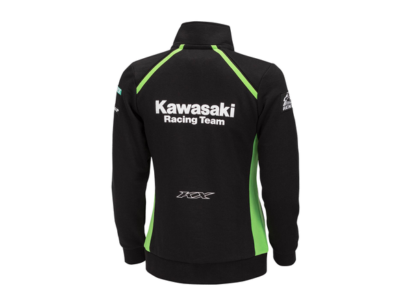 Kawasaki MXGP Sweatshirt mit Reißverschluss und Stehkragen Frontöffnung und Taschen mit Reißverschluss Saum und Ärmelbündchen gerippt Gestickte Kawasaki & KX-Logos Gestickte Sponsorenlogos 80% Baumwolle / 20% Polyester