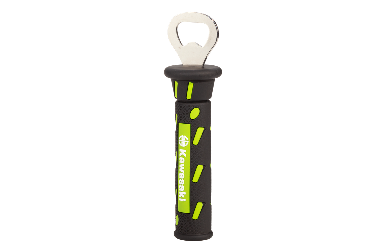 Kawasaki-Flaschenöffner mit Gummigriff im Motorradgriff-Design.