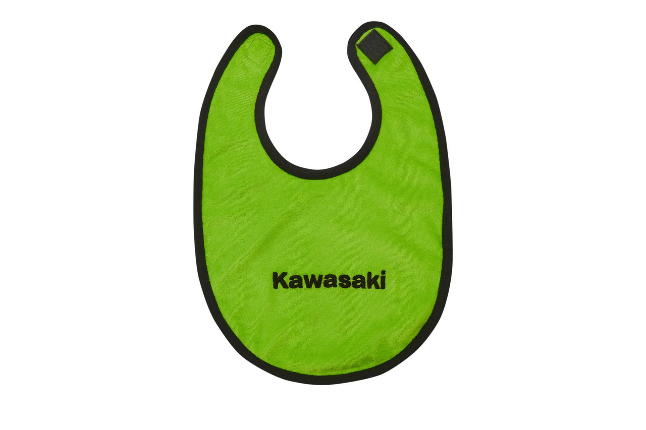 Doppellagiges Baby-Lätzchen mit Kawasaki-Logo und Klettverschluss. Set bestehend aus 2 Stück. 80% Baumwolle, 20% Polyester.