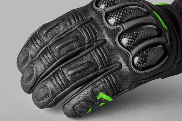 Eine fantastische Ergänzung zur Kawasaki Sport-Fahrerbekleidung. Mit schwimmendem Carbon-Knöchelschutz, abgesteppten Fingern, viel Stretch und Bewegungseinsätzen. Ein komfortabler und dennoch leistungsstarker Sporthandschuh.