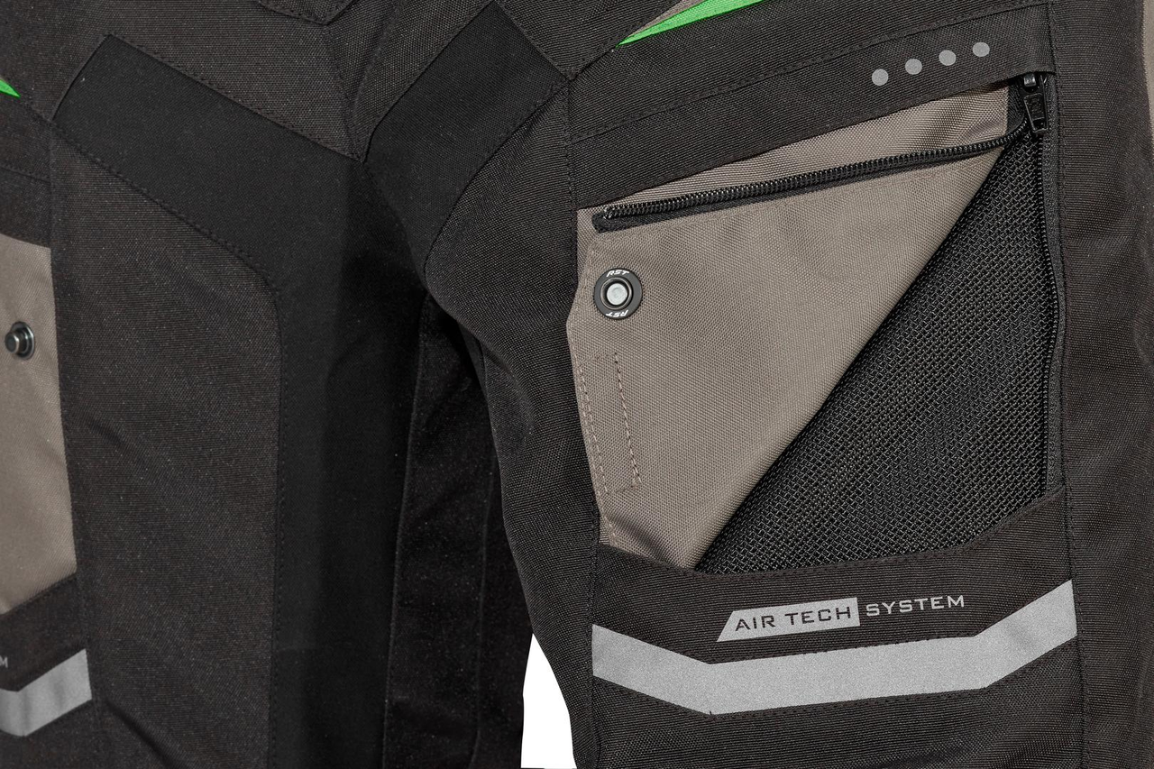 Weitere unterstützende Features sind MAX-Reißverschlüsse, ein 360°-Verbindungsreißverschluss zum Verbinden mit der TRIER-Textiljacke und Mehrtaschenein- und -auslassbereiche, die nach Bedarf geöffnet werden können, um den Luftstrom in, um und aus der Hose zu lenken.
