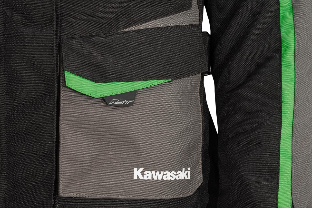 Stretch-Einsätze, Arm- und Taillenversteller unterstützen alle eine bequemere, konturierte Passform. Zu den weiteren unterstützenden Funktionen gehören MAX-Reißverschlüsse, ein 360°-Verbindungsreißverschluss zum Verbinden mit jedem RST-Kleidungsstück. Sowie mehrere Ein- und Auslassventilationsbereiche, die nach Bedarf geöffnet werden können, um den Luftstrom in, um und aus der Jacke zu leiten.