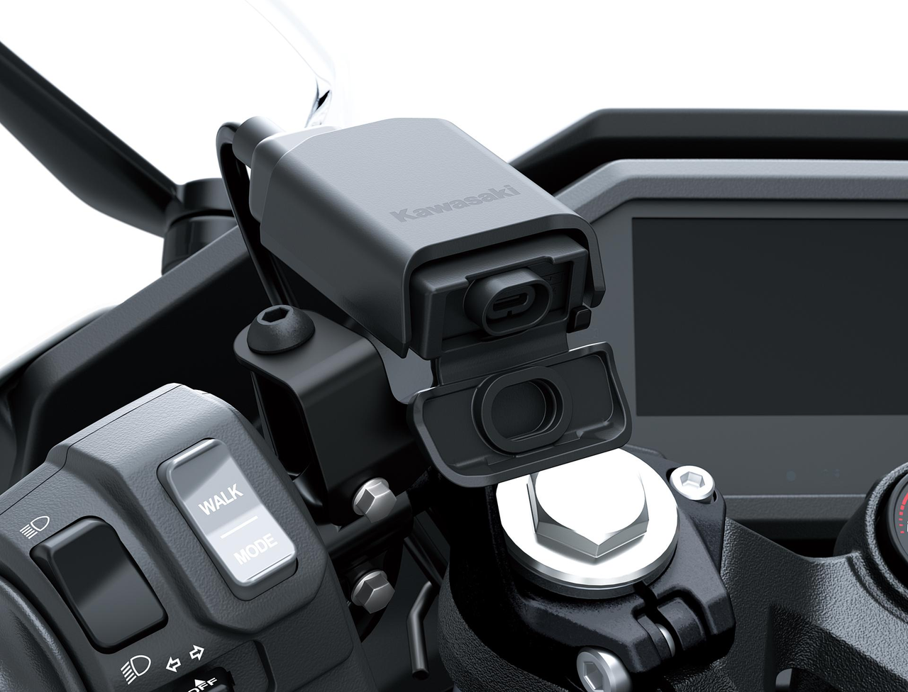 Wasserresistenter USB-C-Anschluss, bequem am Lenker montiert. Vibrationsgedämpft, die Steckdose ist mit einer Kappe verschließbar. Die maximale Gesamtleistung beträgt 3A. (Zum Betrieb muss das Relais-Kit installiert sein) (separat erhältlich)