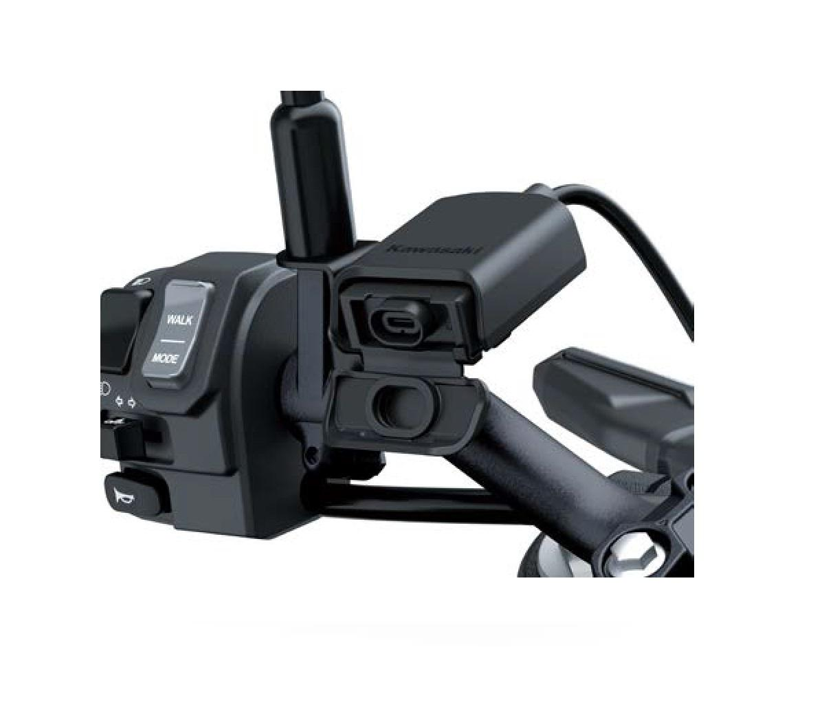 Wasserresistenter USB-C-Anschluss, bequem am Lenker montiert. Vibrationsgedämpft, die Steckdose ist mit einer Kappe verschließbar. Die maximale Gesamtleistung beträgt 3A. (Zum Betrieb muss das Relais-Kit installiert sein) (separat erhältlich)
