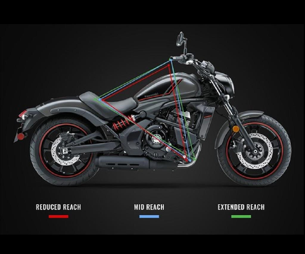 • 3: Ergo-Fit The Easy Reach seat moves you forward ± 50mm Additionally, the slimmer tapered seat profile allows the rider to reach the ground better.