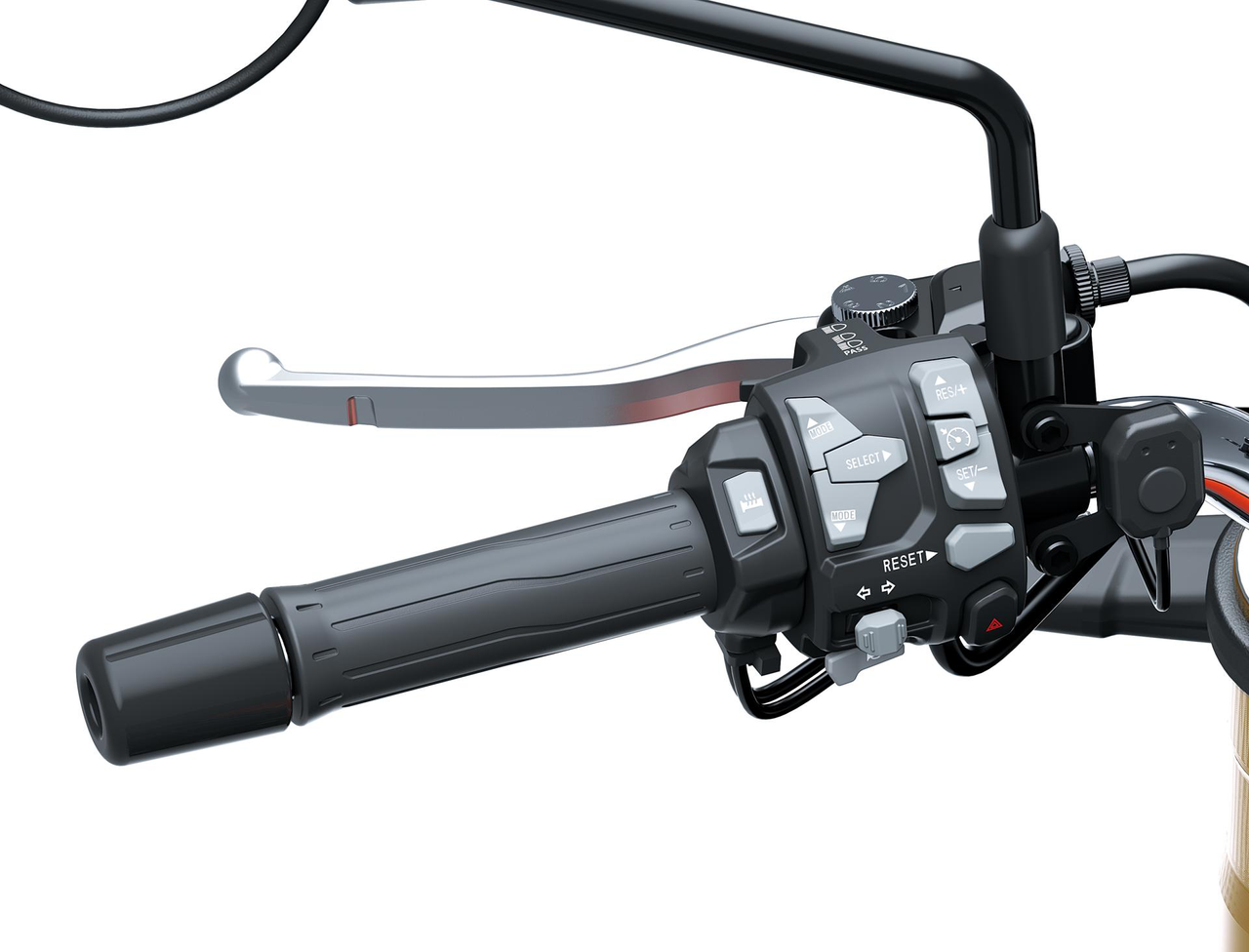 Die ergonomisch geformte Griffheizung hält Ihre Hände auf der Straße warm, ohne den Griff zu sehr zu vergrößern.