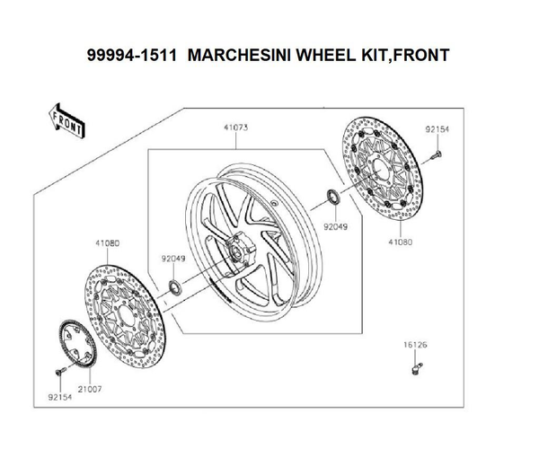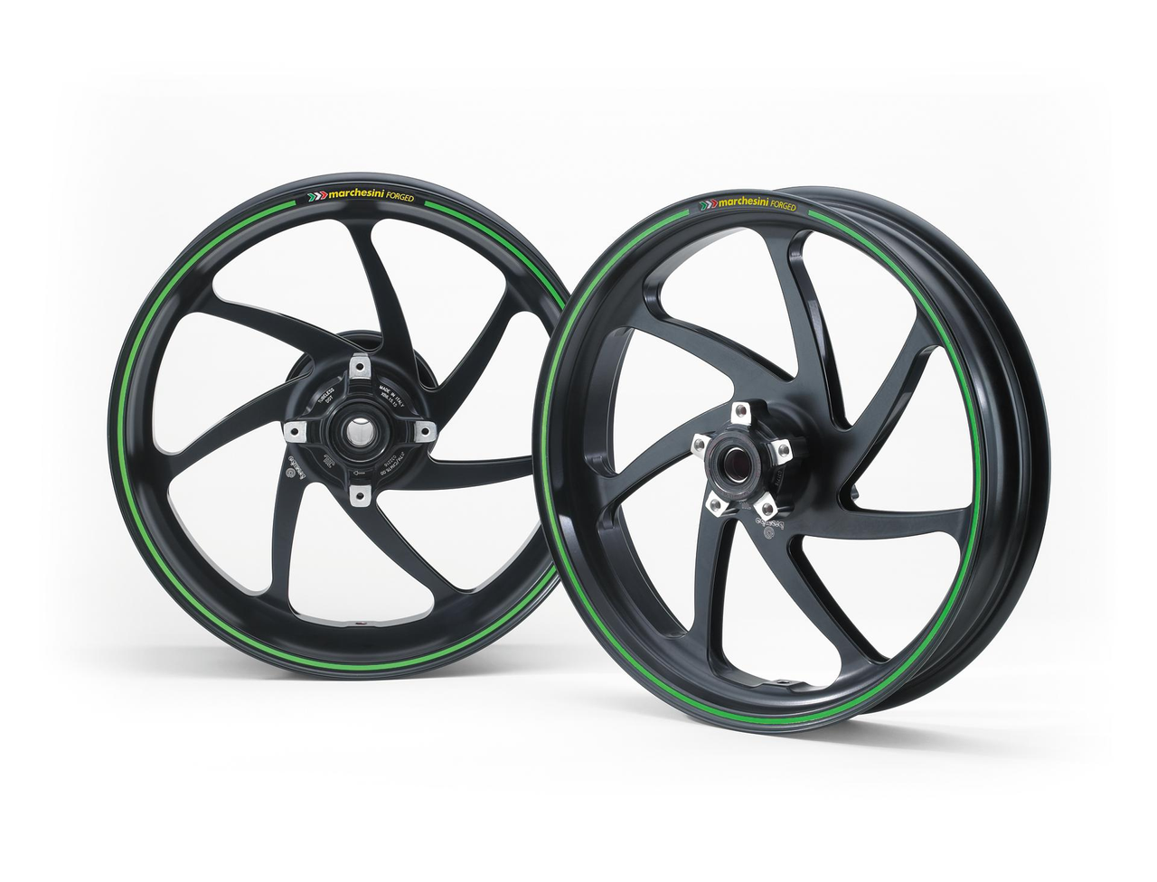 Marchesini Leichtgewicht-Vorderradkit. Enthält: - 1 x Marchesini geschmiedetes Aluminiumrad mit Felgenbänder - 2 x Vordere Bremsscheiben - 1 x ABS-Sensorring vorne - 10 x Bolzen für ABS-Sensor/Bremsscheibe vorne - 1 x Aluminium-Seitenventil